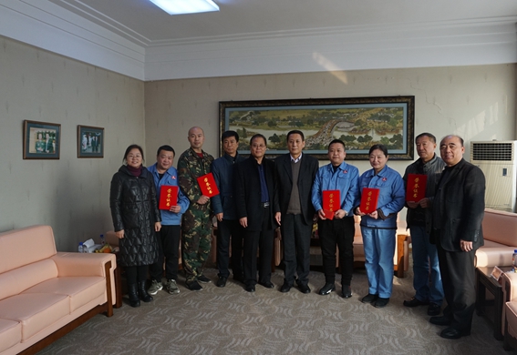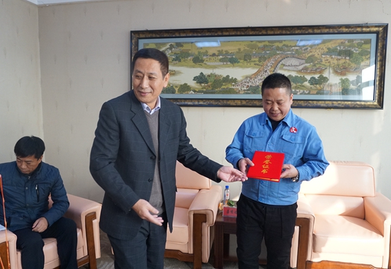 12月10日,市總工會(huì)副主席姜明遠(yuǎn)、勞動(dòng)和經(jīng)濟(jì)工作部部長(zhǎng)王洪濤和元寶區(qū)總工會(huì)主席崔建國(guó)、副主席叢蓮敏等領(lǐng)導(dǎo)來(lái)到遼寧天澤產(chǎn)業(yè)集團(tuán)有限公司,為榮獲丹東市職工技能大賽“車工技術(shù)狀元”的關(guān)慶操和榮獲丹東市職工“五小”優(yōu)秀創(chuàng)新成果獎(jiǎng)項(xiàng)的代表頒獎(jiǎng)。